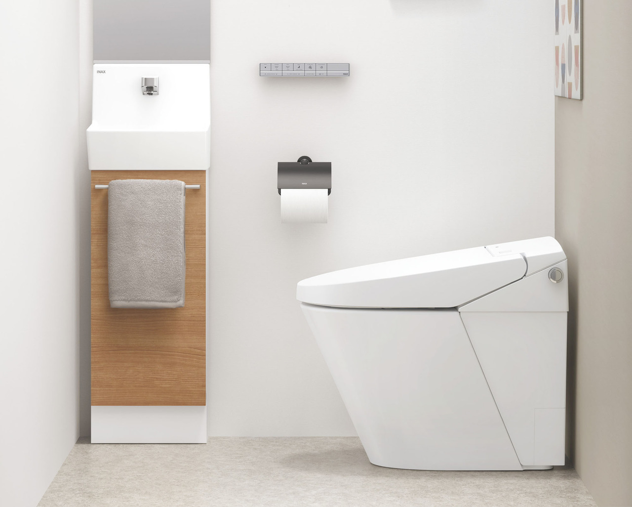 【同仕様施工例】節水はもちろんお手入れのしやすさが特徴の温水シャワー機能付きトイレが2ヶ所。いつでも清潔なトイレを保てます。