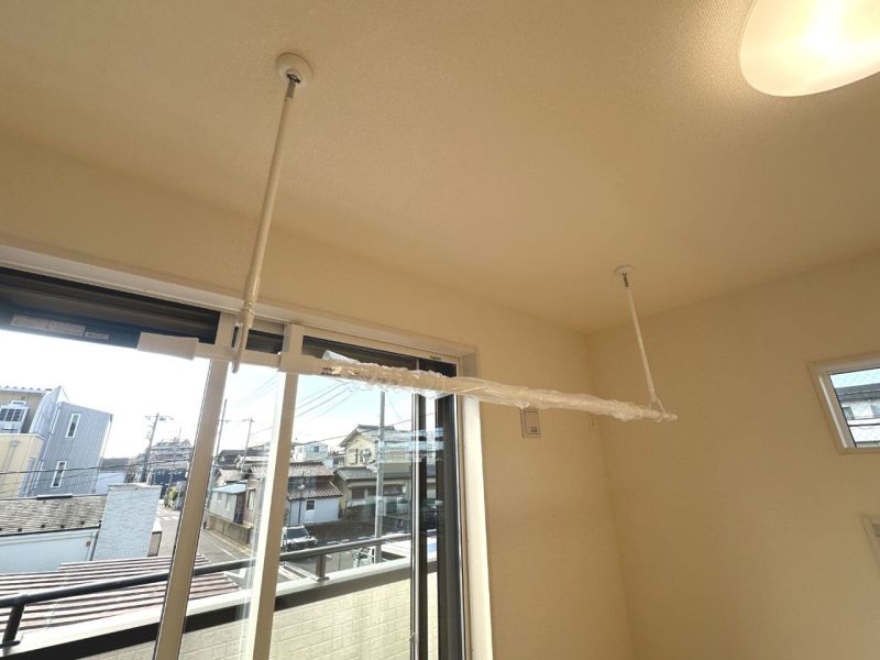 室内物干しを標準装備、エアコンや扇風機を使って、洗濯物まわりの空気を入れ替えてあげることで、自然乾燥よりも早く乾きます。また、早く乾くことで雑菌の繁殖を抑え、生乾きの臭いを減少させることにも繋がります。普段は収納できて見た目もスッキリ。