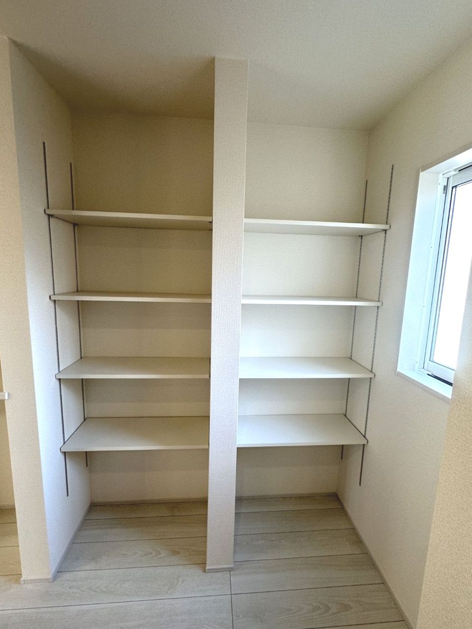 キッチン脇には食料保存庫としてお使いいただけるパントリーを設置。たくさんの買い置きも可能です。【3号棟】