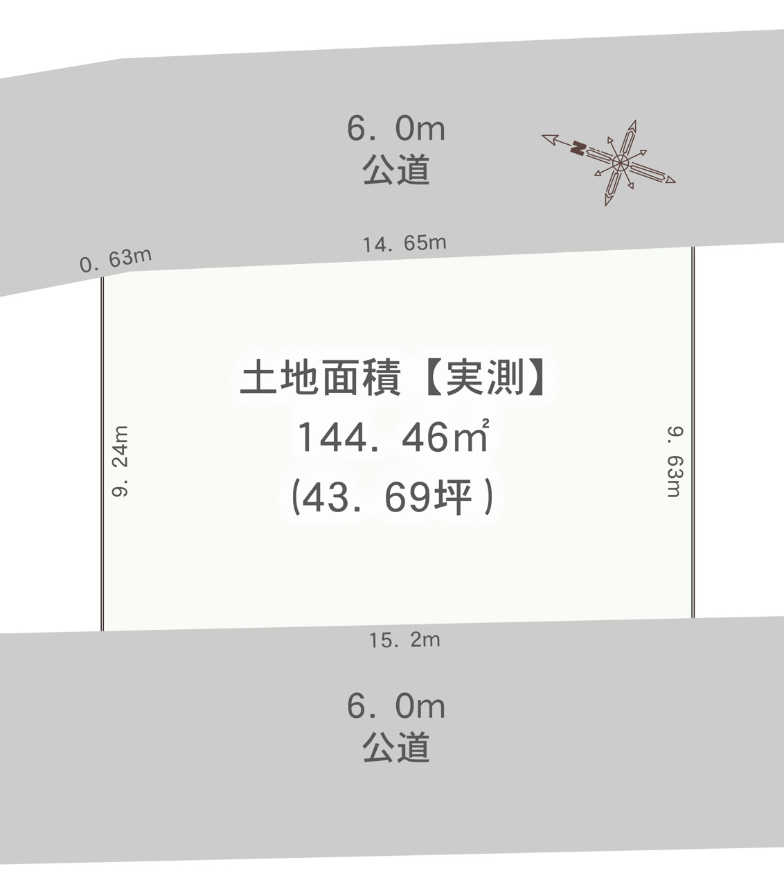 ■南西側、北東側各6m公道の両面道路、間口14~15m