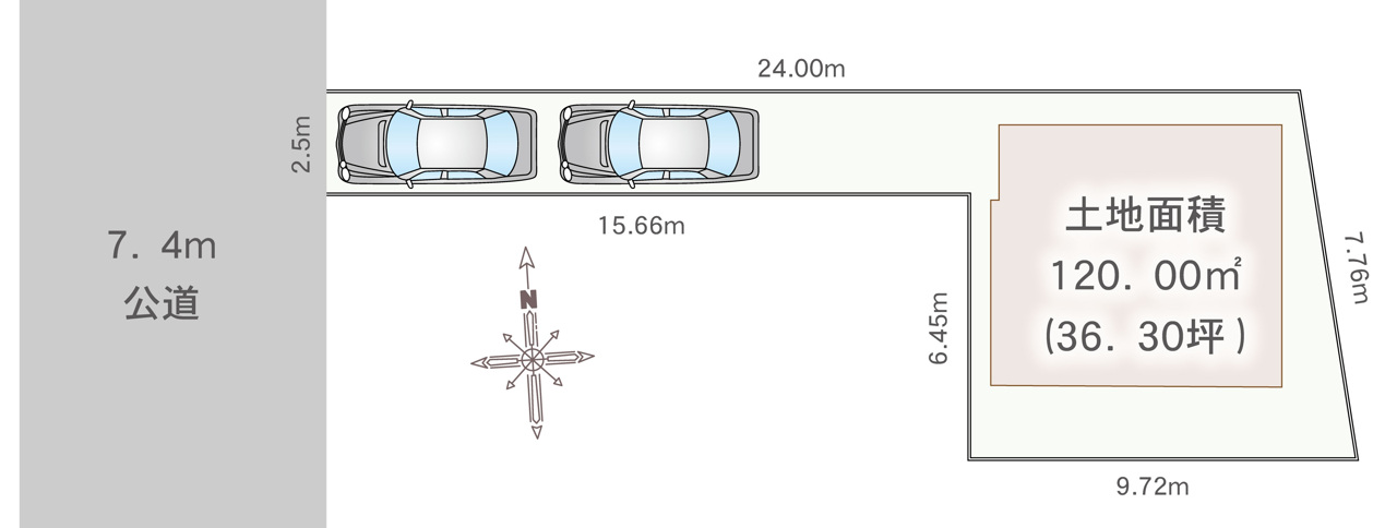 | 権利種類 | 所有権 | 接道 | 西側7.4M公道に2.5M接道 |