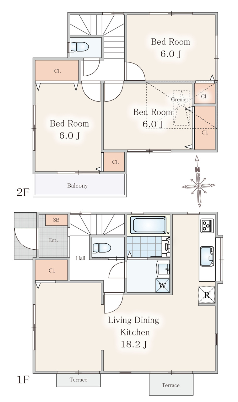 | 間取 | 3LDK (LDK18.2帖、洋室6.0帖、洋室6.0帖、洋室6.0帖) | ||