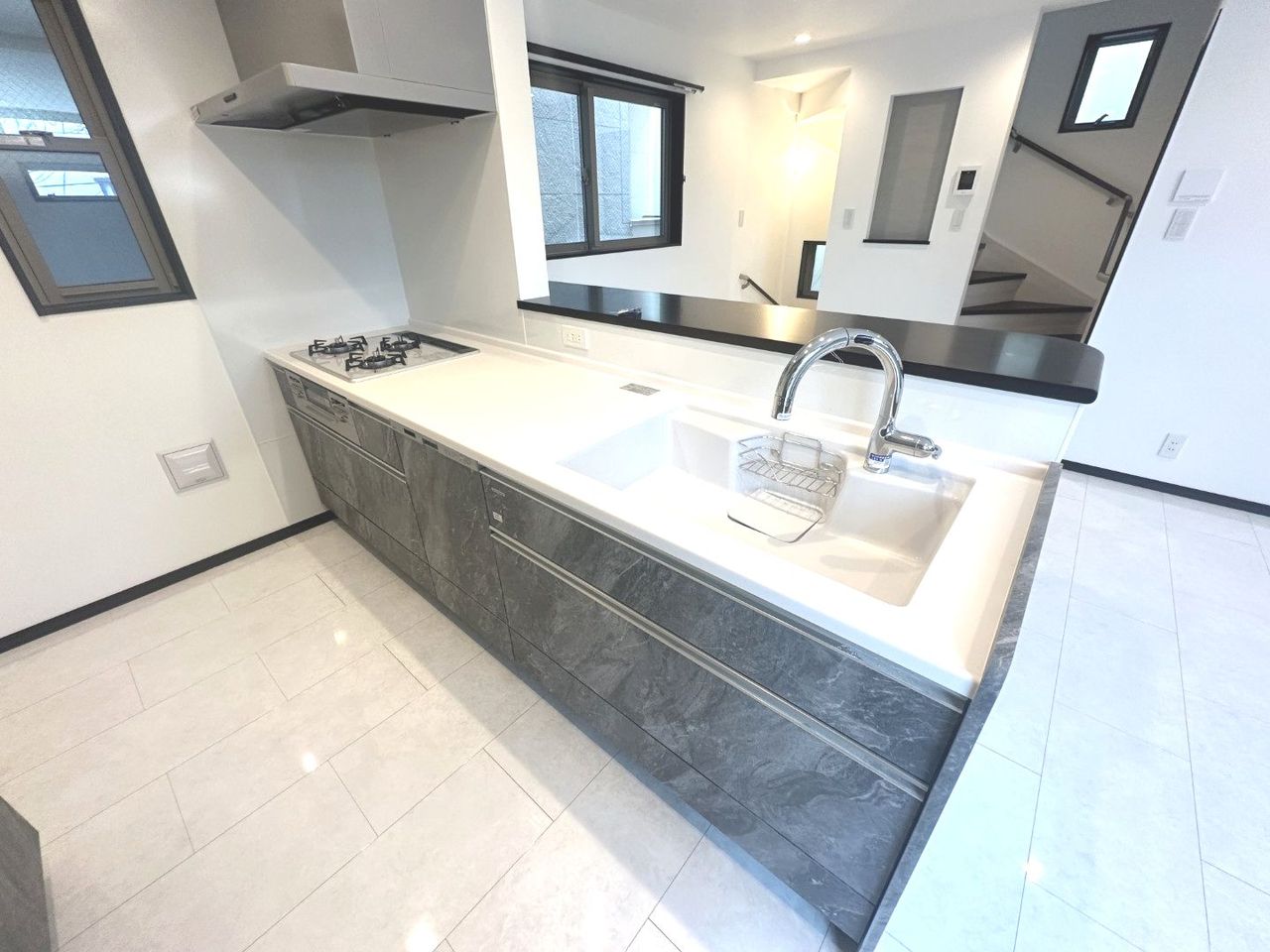 リビングが見渡せる人気の対面キッチンを採用。お料理しながら家族の会話も弾みます。目が届きますので小さなお子様がいるご家庭でも安心。