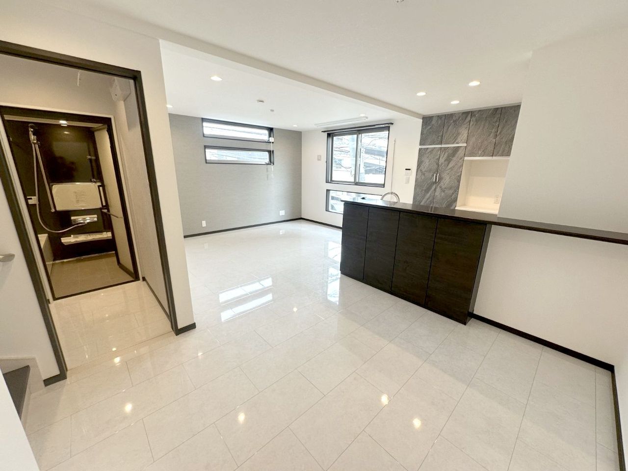 御家族皆様の「いってきます」「ただいま」の声がこだまする、清潔感溢れる玄関スペースです。大容量シューズボックスがありますのでいつ来客が来てもスッキリとした空間に。