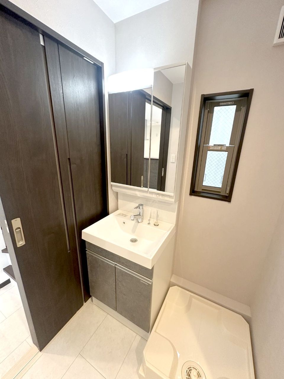 大きな三面鏡、実用性と機能美を兼ね備えた先進の洗面化粧台。ノズルが伸びお手入れもしやすくなっています。リネン類、ストック用品もしまえる豊富な収納量でスッキリ綺麗な空間を保っておけます。