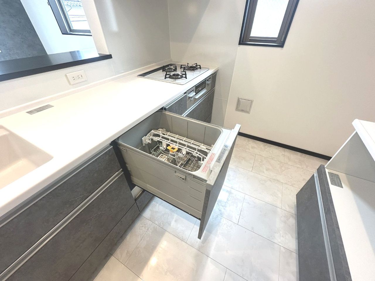 キッチンには食洗機が標準装備。水道代の節約や奥様の家事の負担を減らしてくれます。【B号棟 2025年5月撮影】