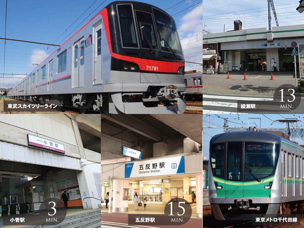 | 交通 | 東武伊勢崎線「小菅」駅徒歩3分 常磐線「綾瀬」駅徒歩13分 東武伊勢崎線「五反野」駅徒歩15分 |