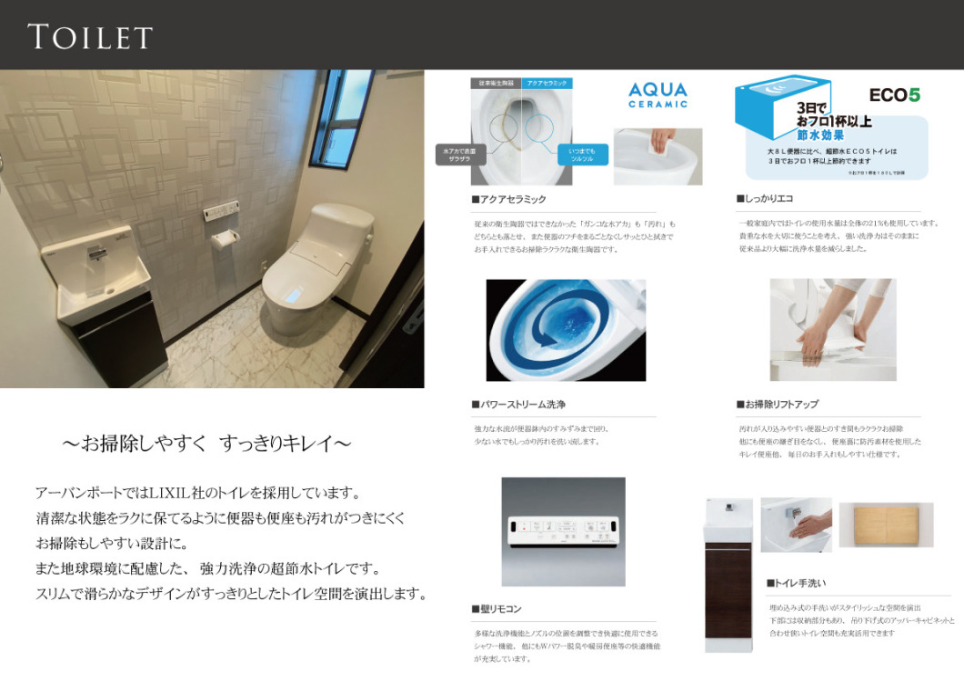 アーバンポートシリーズでは不快な風もなく、足元からおだやかに部屋全体を暖めるガス温水式床暖房を採用。健康や美容にいいのはもちろん、家事や勉強の能率もアップするなど暮らしの快適指数はどんどん上昇します。また熱回収を従来の倍にすることにより給湯効率を15%アップ。またCO2排出量も削減します。仕様ガス量が減りガス代も節約。環境にも家計にも優しいエコジョーズを標準装備。