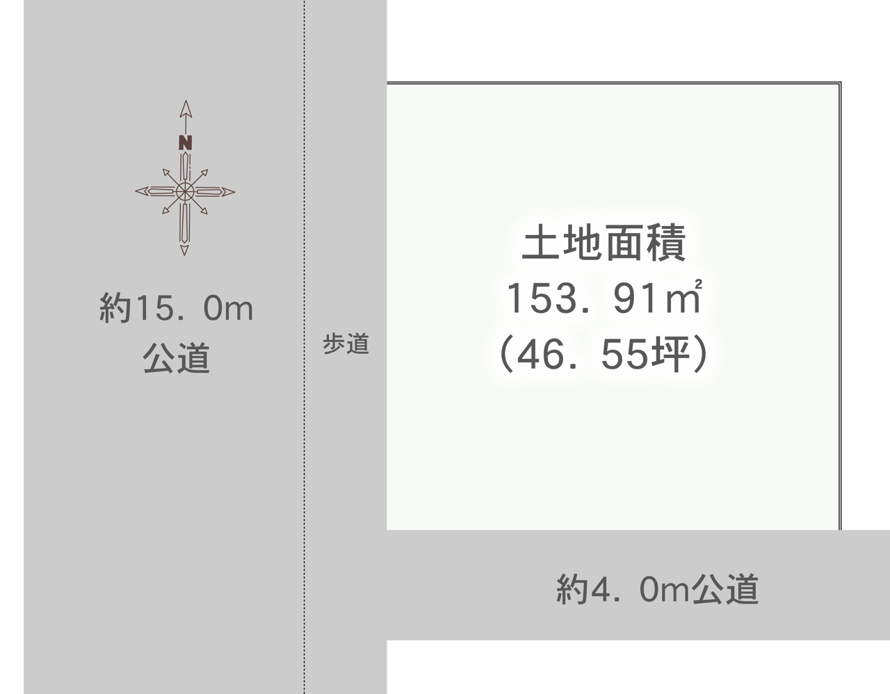| 接道 | 西側15M公道に接道 南側4M公道に接道 |