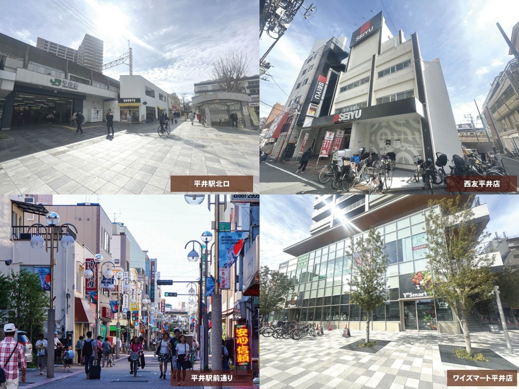 駅南口にある平井駅前通りには飲食店も多数並び、賑わいを見せています。毎日のお買い物に大変便利な住環境です。