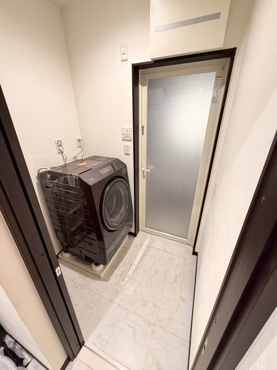 バルコニーと同フロアに室内物干し付のランドリースペースを配置、家事動線を意識した間取設計