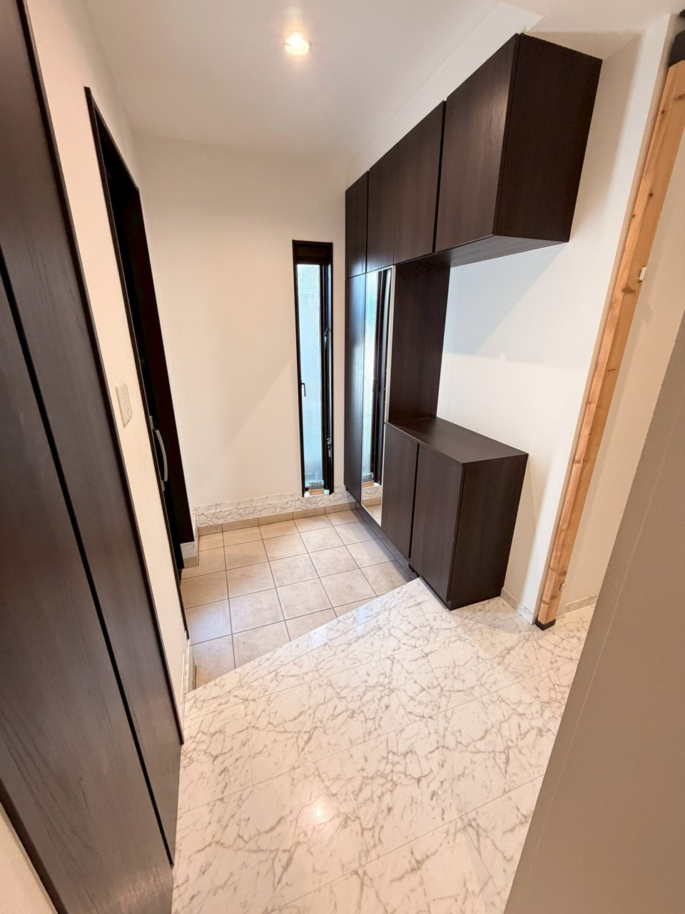 御家族皆様の「いってきます」「ただいま」の声がこだまする、清潔感溢れる玄関スペースです。大容量シューズボックスがありますのでいつ来客が来てもスッキリとした空間に。