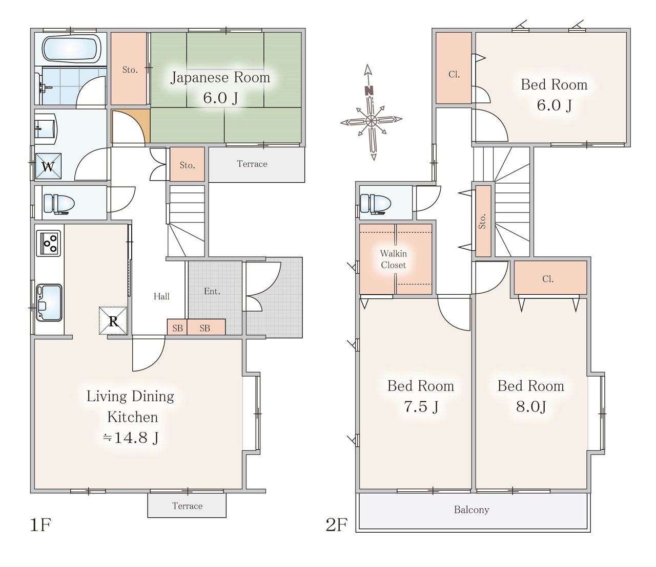 | 間取 | 4LDK (LDK14.8帖、洋室8.0帖、洋室7.5帖、洋室6.0帖、和室6.0帖) | ||