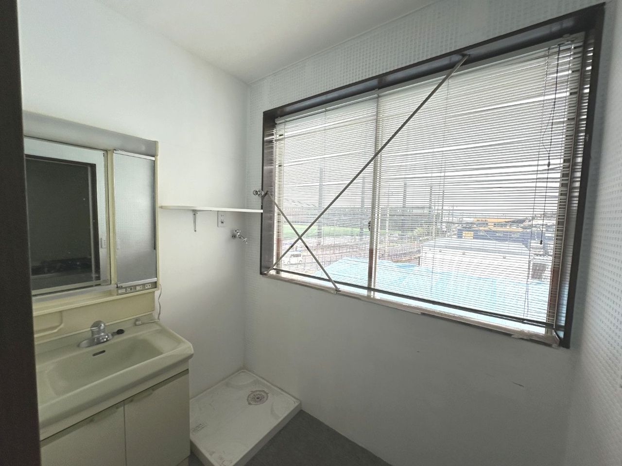 窓付きの明るいパウダールーム。身だしなみのチェック等にも最適。床材も水に傷に強い部材を使用しています。