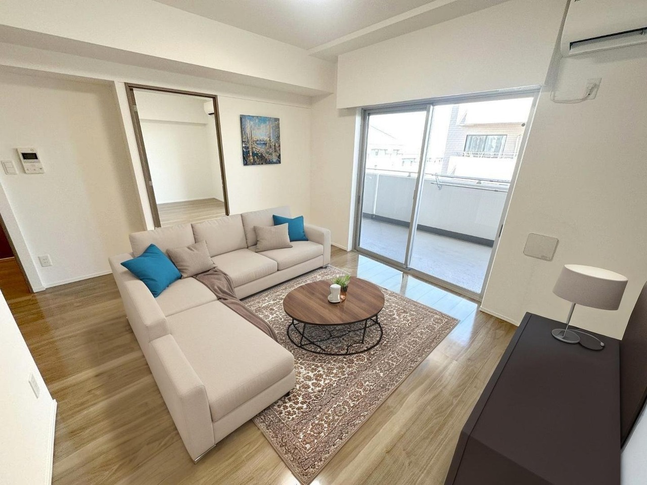 2部屋に跨る広々バルコニー。レイアウトのしやすい1LDK
