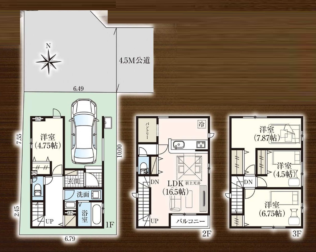 | 間取 | 4LDK (LDK16.5帖、洋室7.87帖、洋室6.75帖、洋室4.5帖、洋室4.75帖) | ||
