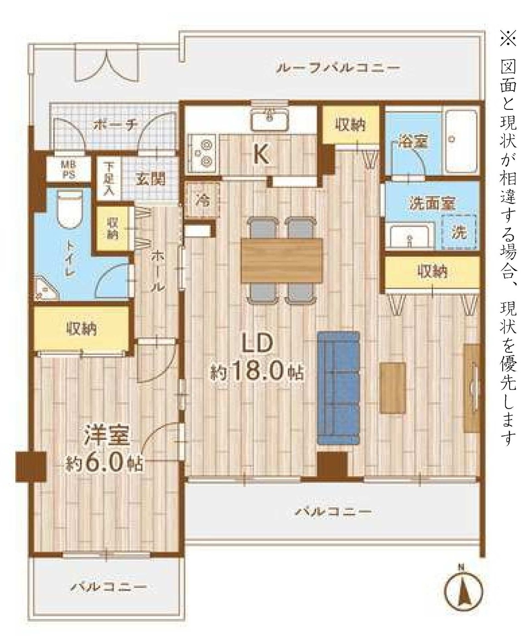 | 間取 | 1LDK (洋室6帖、LDK18帖) | ||