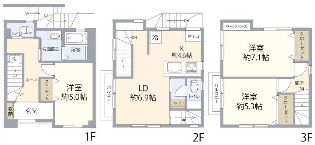 | 間取 | 3LDK (洋室5帖、LDK11.5帖、洋室5.3帖、洋室7.1帖) | ||
