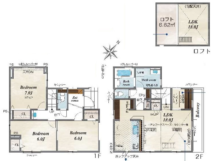 - LDKはゆとりの18帖以上!対面式のキッチンからはリビングを見渡せます!ロフトあり!季節物など大きな荷物もしまえ、お片づけもラクラク。