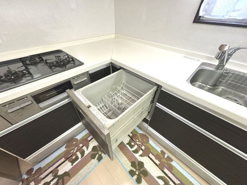 忙しい毎日の家事をサポートしてくれる食洗器付きシステムキッチン。食器をセットしたら、ボタンひとつで全自動。時間の節約にもなりますし、手洗いよりも衛生的で、汚れもスッキリ落としてくれます。
