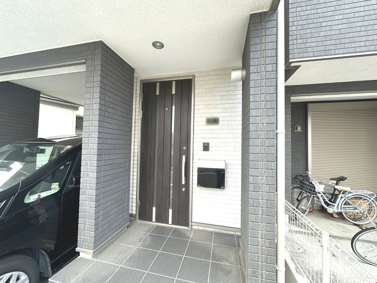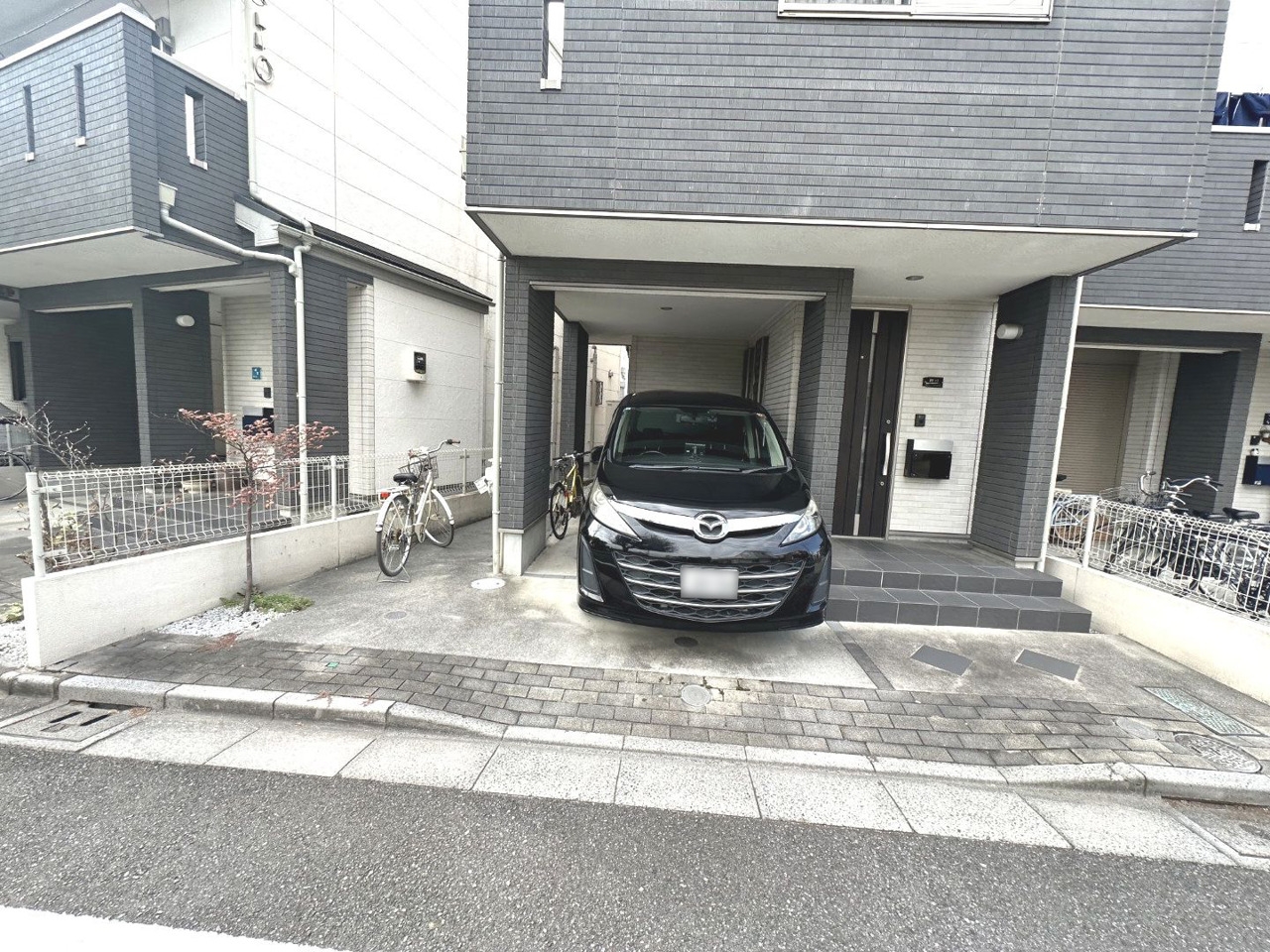 大切な愛車を雨風から守るビルトイン車庫。ワンボックスカーも駐車できる広さ。他に駐輪スペースもございます。
