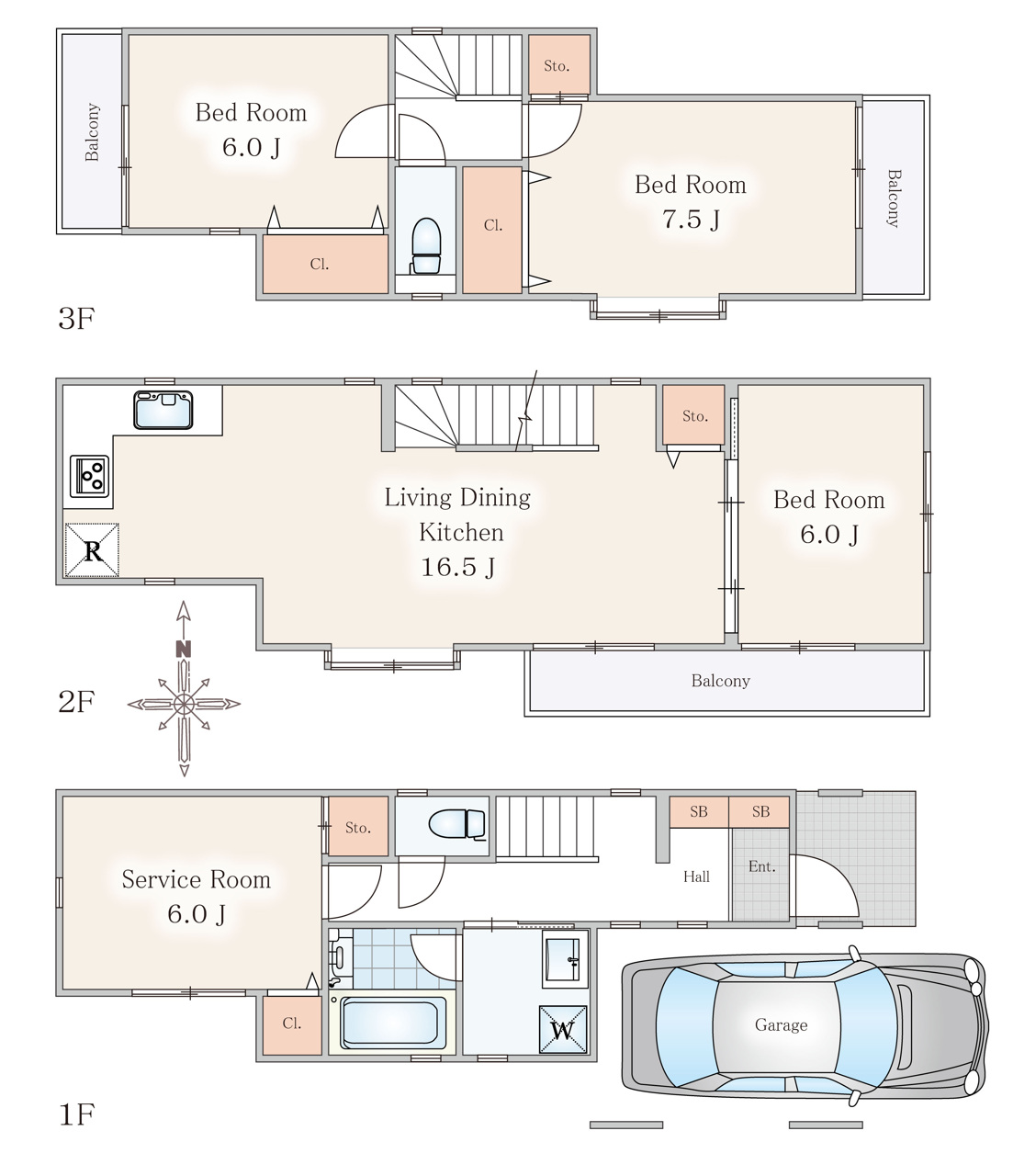 | 間取 | 3SLDK (LDK16.5帖、洋室7.5帖、洋室6.0帖、洋室6.0帖、S6.0帖) | ||