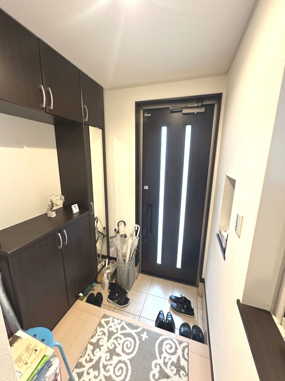 御家族皆様の「いってきます」「ただいま」の声がこだまする、清潔感溢れる玄関スペースです。大容量シューズボックスがありますのでいつ来客が来てもスッキリとした空間に。
