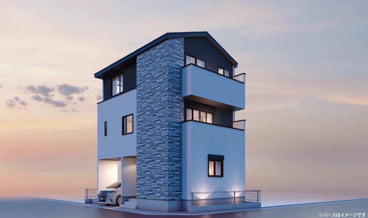 - 前面道路7.4m×4mの明るい南西角地に車庫付き、設備充実の4LDK・3階建てが誕生!LDKはゆとりの18.5帖!太陽光パネル設置、安心して永くお住まいいただけるBELS住宅。