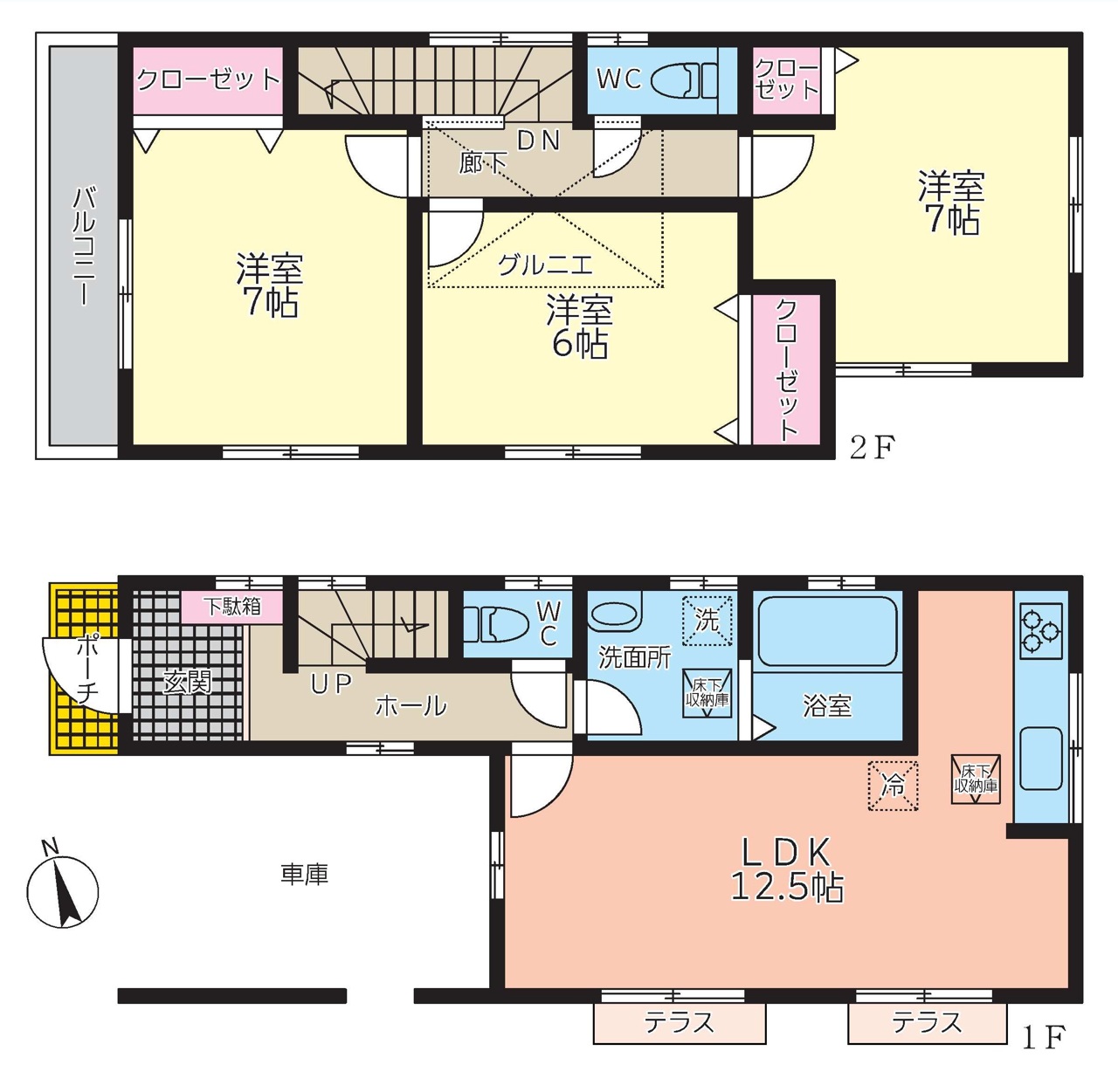 | 間取 | 3LDK (LDK12.5帖、洋室7帖、洋室7帖、洋室6帖) | ||
