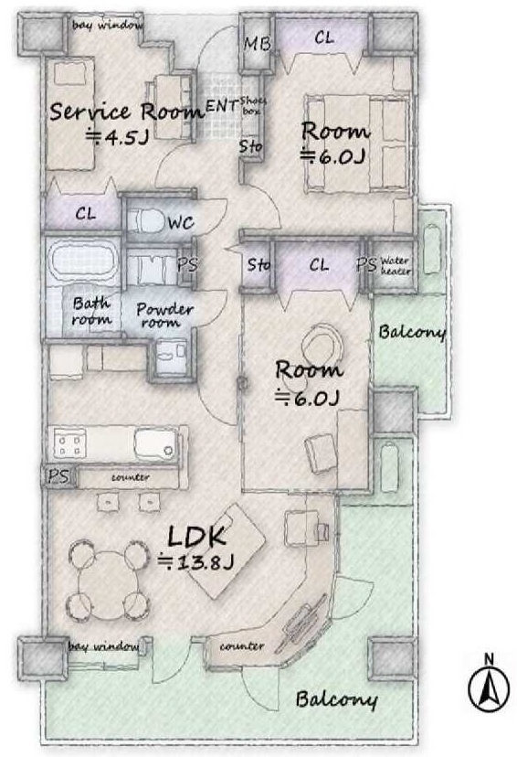 | バルコニー面積 | 22.99m² 南向き | ||