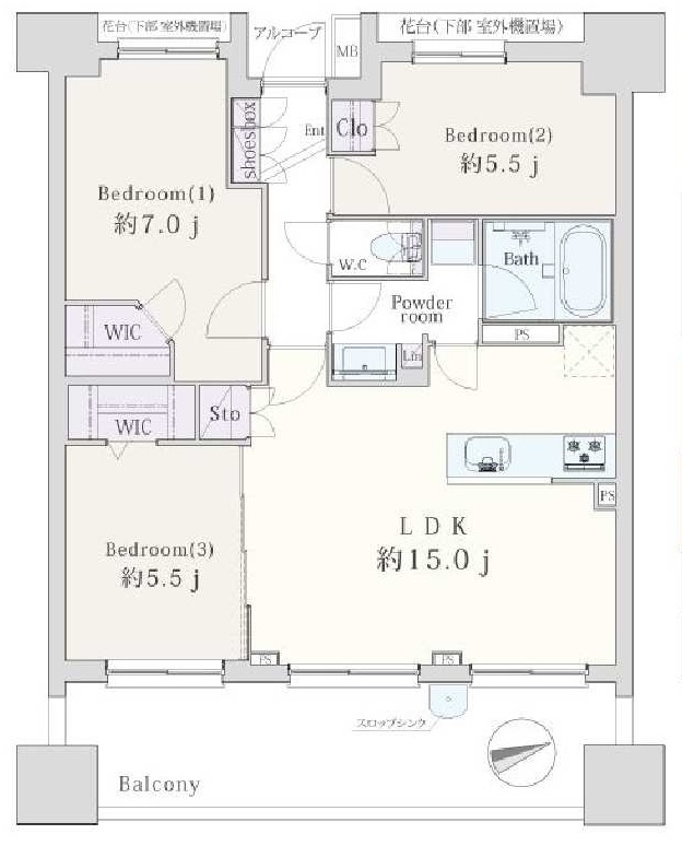 | 間取 | 3LDK (LDK15帖、洋室7帖、洋室5.5帖、洋室5.5帖) | ||