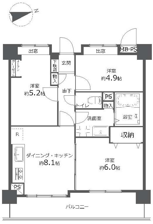 | バルコニー面積 | 10.27m² 南東向き | ||