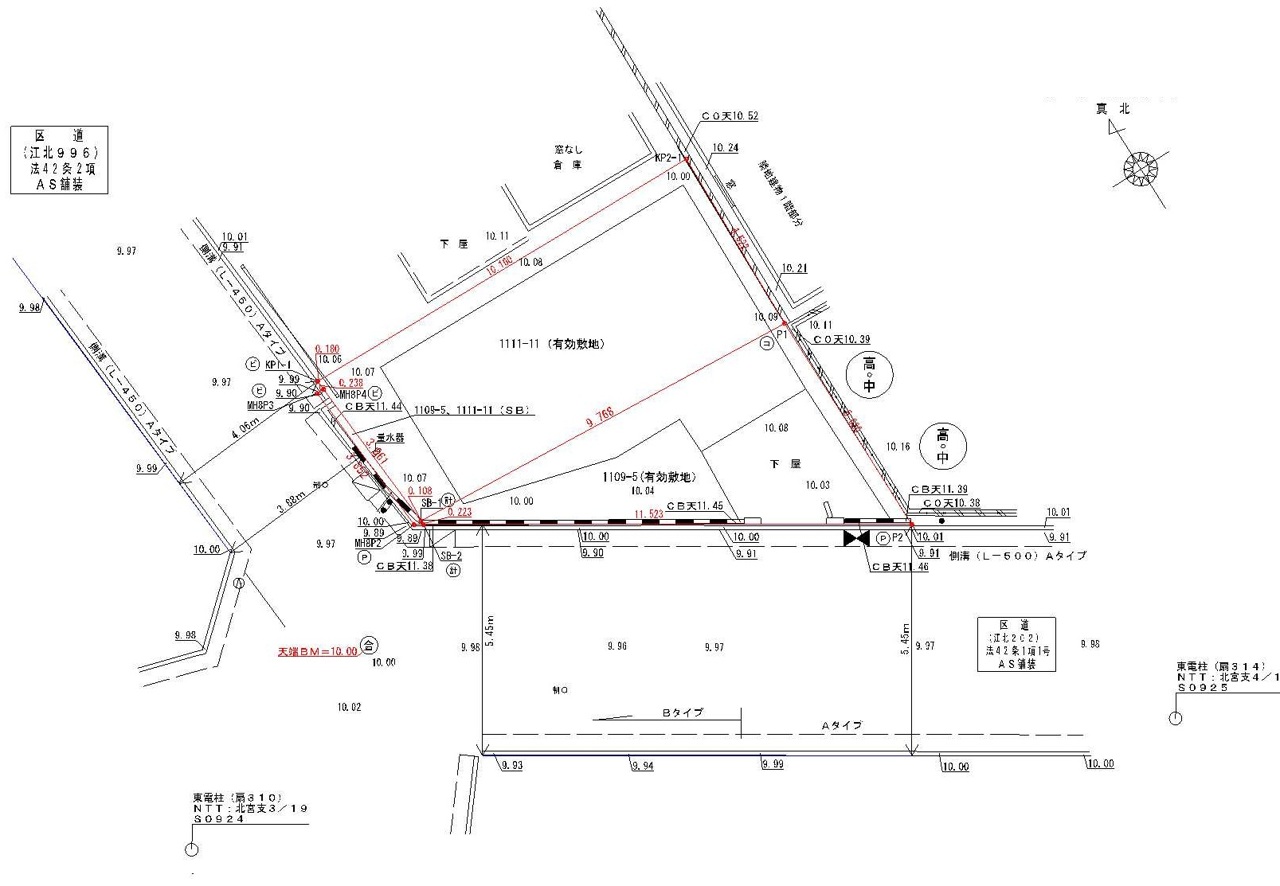| 接道 | 南側5.4M公道に11.5M接道 西側4M私道に3.8M接道 |