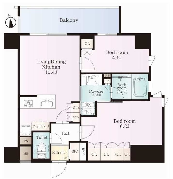 | 間取 | 2LDK (LDK10.4帖、洋室6帖、洋室4.5帖) | ||