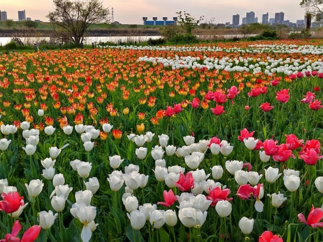 チューリップ花壇は春にはみごとな景色を見ることができます!(写真ACより)