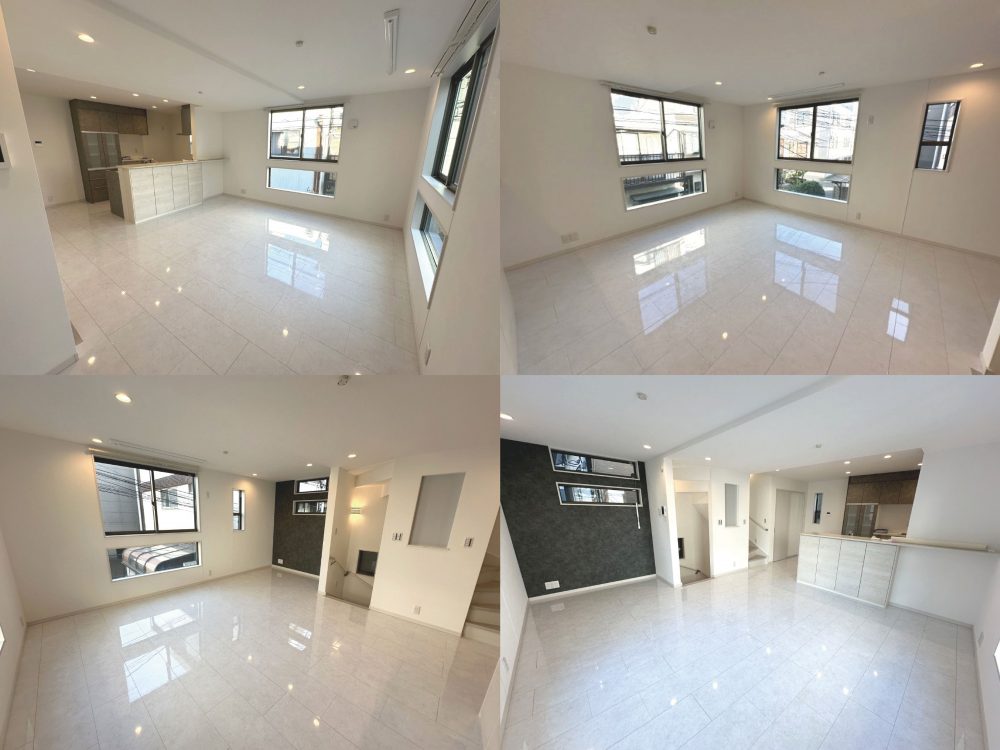 LDK17.5帖の広さ、三面採光で採光もたっぷり。白を基調とした明るい空間です。
