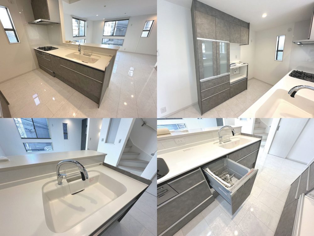 もちろん3口コンロや食洗機、タッチレス式の浄水器内蔵水栓なども標準装備。家事の時短をサポートする機能が満載です。