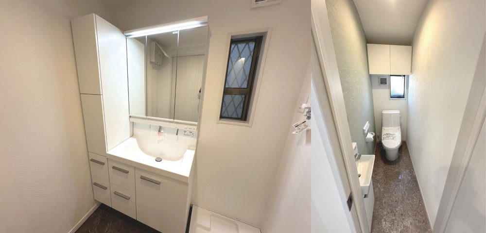 1・3階にトイレを配置。お手入れのしやすい設計と床で常に清潔な空間を保てます。もちろん温水洗浄便座付きです。