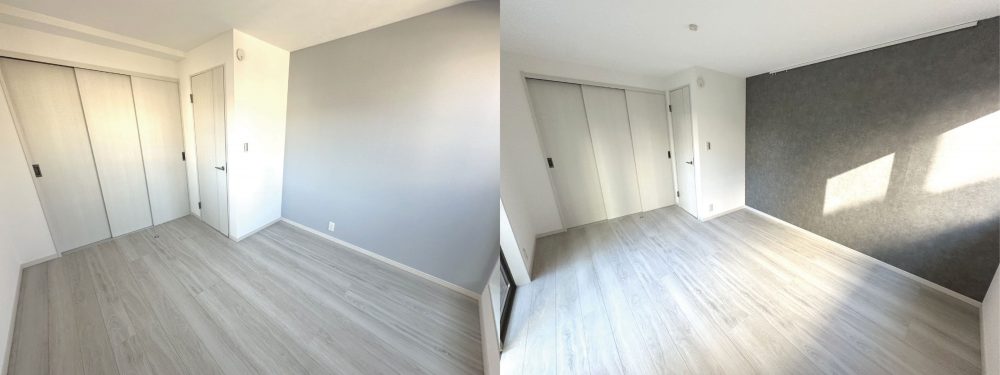 一部屋ずつシンプルながらこだわったアクセントクロスを配した居室。お部屋によって雰囲気が変わるので、どんなインテリアにしようか想像がふくらみます。