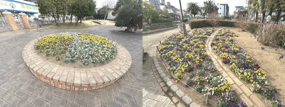 園内は洋風庭園らしくいたるところに花壇が設置され、四季を通じて様々な花をみることができます。