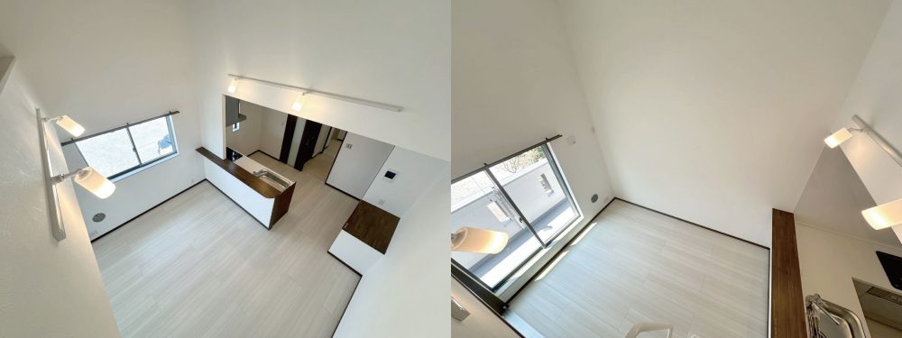 2階部分の3部屋には収納スペースとして便利なロフトを設けました。それにより勾配天井の吹抜が開放的な空間を演出。