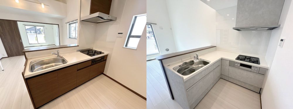 キッチンはアーバンポートと同仕様のLIXIL社のキッチンを採用。キッチン本体・上部には収納スペース、食器類も収納できるカップボードを設置