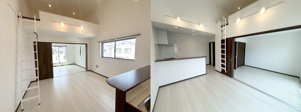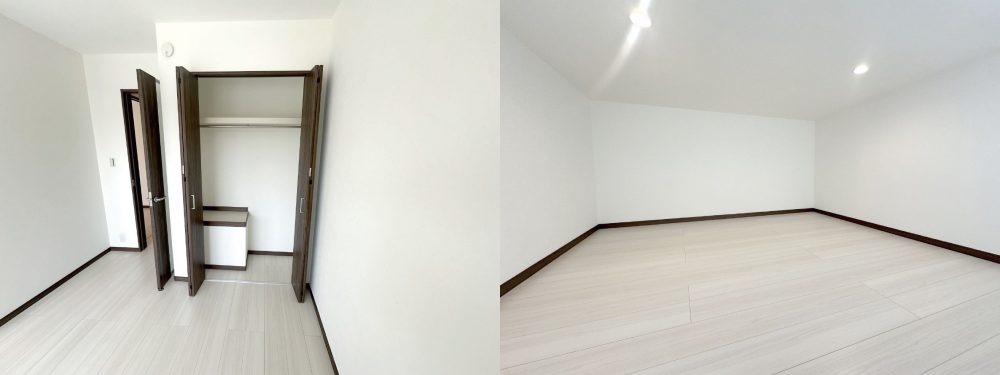 4部屋とも全居室収納を配置、また2階3部屋にはロフトもありますので、室内をスッキリしてくれるだけでなく、箪笥等の家具によるキズ等のリスクも軽減。