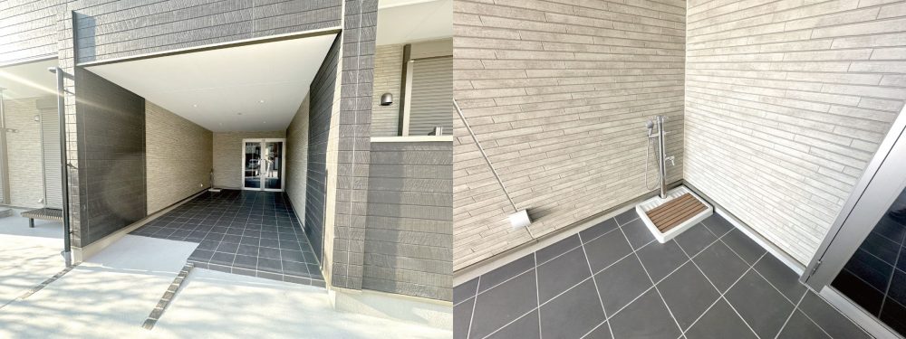 広々と開放的なエントランス部分はタイル張りの上質な空間。バリアフリーにも対応しています。