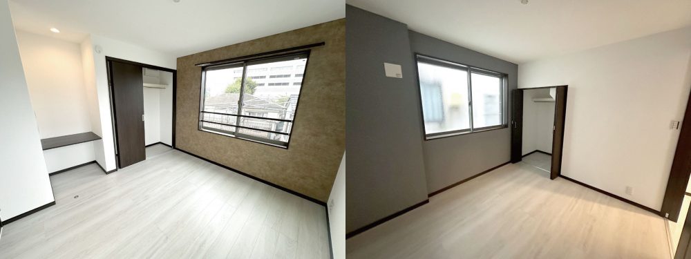 一部屋ずつシンプルながらこだわったアクセントクロスを配した居室。お部屋によって雰囲気が変わるので、どんなインテリアにしようか想像が膨らみます。